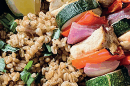 Sicilian Chicken & Vegetable Skewers with Pesto Farro